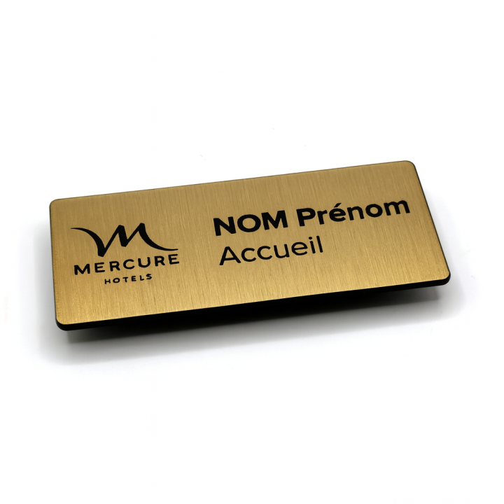 Muestra tu identidad con distinción gracias a nuestro identificador magnético rectangular 70x30 mm efecto metal cepillado grabado. Diseñado para empresas, eventos, ferias profesionales o puestos de atención al cliente, este identificador es a la vez funcional, estético y extremadamente duradero.