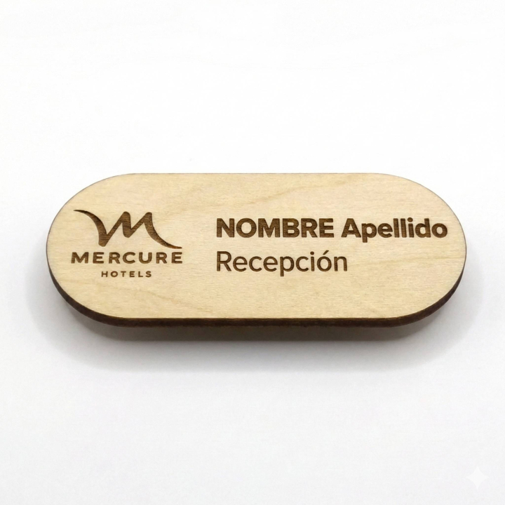Identificadores de madera con imán: La alternativa ecológica y elegante para identificar a su personal. Su acabado en madera natural y su grabado de alta precisión (sin tintas que se borran) ofrecen una imagen impecable para hoteles y empresas. Incluye fijación magnética para no dañar los uniformes. ¡Personalice su imagen corporativa con estilo y sostenibilidad! (quantité min: 10ex)